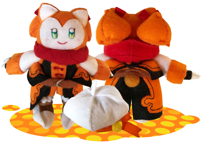 丁寧に服を重ねた甲斐があり、トレジャーコート下を外せるという変態仕様。ベルトが力こそパゥワー仕様なので、尻尾に気を付けてもらえればベルトを下げて外し、トレジャーコート下も外れるのである。我ながら意味のわからない変態ぶりである。トレジャーコートはゲーム内の仕様に忠実に(本当は外側を挟み込んで頑丈さを増すほうが現実的なのだが、手数が少ないほうが綺麗に仕上がる問題で逆になった)、表も裏も刺繍を施してあります。